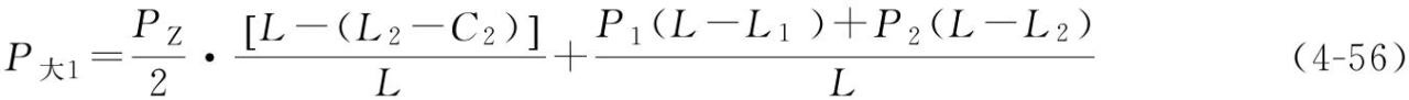 式中 P大1——靠近大車主梁走臺外側(cè)的車輪群總輪壓,每一個車輪輪壓為P大1/m;每一個角的車輪群數(shù)量為m;