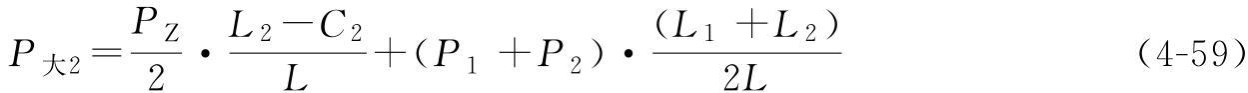 P大2——靠近大車主梁走臺里側(cè)的車輪群總輪壓,每一個車輪輪壓為P大2/m;每一個角的車輪群數(shù)量為m;